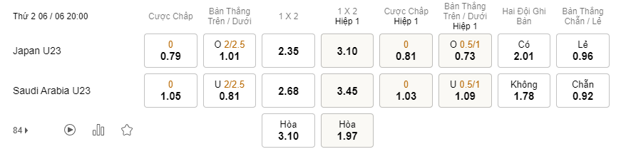 Soi kèo Châu Á U23 Nhật Bản vs U23 Saudi Arabia: 0.79*0*1.05