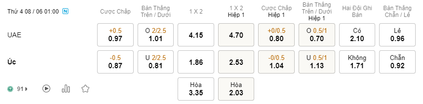 Tỉ lệ kèo UAE vs Australia